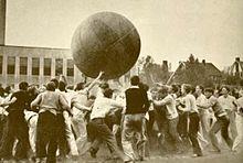 While the varsity athletics program was struggling during the 1930s, intramural participation topped 84% of the student population.[130] During that time, the management of intramural activities was transferred to the athletic department, allowing the intramural program to use the College's varsity facilities.[126] In the 1930s and 1940s, groups of students competed for the "Big Cup," a trophy given to the most outstanding team, as judged by a cross-sport point system.[126]