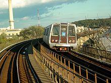 WMATA broke ground for its train system in 1969.[14] The first portion of the Metrorail system opened March 27, 1976, connecting Farragut North to Rhode Island Avenue on the Red Line.[14][15] The 103 miles (166 km) of the original 83-station system was completed on January 13, 2001, with the opening of Green Line's segment from Anacostia to Branch Avenue.[15]