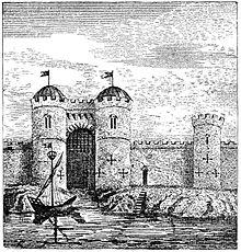 A watergate (or water gate) is a fortified gate, leading directly from a castle or town wall directly on to a quay, river side or harbour. In mediaeval times it enabled people and supplies to reach the castle or fortification directly from the water, and equally allowed those within the castle direct access to water transport.[1]