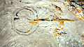 - The petroglyph usually contains a single deep depression, or "dot", within or near the circle.