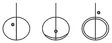 The circle may also contain additional arcs or partial arcs, forming a crescent on one side of the ring, or a double ellipse; but the basic glyph remains the same.