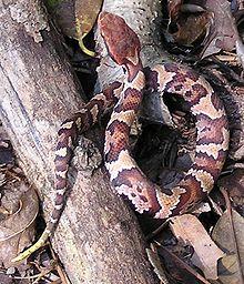 - ^ Gibbons JW, Dorcas ME (2002). "Defensive Behavior of Cottonmouths (Agkistrodon piscivorus) toward Humans". SREL Reprint #2583. Summary Archived 2005-11-21 at the Wayback Machine at the Savannah River Ecology Laboratory at the University of Georgia. Accessed May 29, 2007.