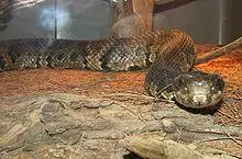 - ^ Kardong KV (1982). "Comparative study of changes in prey capture behavior of the cottonmouth (Agkistrodon piscivorus) and Egyptian cobra (Naja haje)". Copeia 1982: 337-343.
