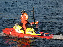 Apart from the obvious hazards of collisions and mechanical breakdowns common to all vehicles, operating or riding a PWC can involve a risk of orifice injuries.[15][16] These injuries are typical of the kinds of injuries that waterskiers experience as a result of falling into the water at speed.[17] Such injuries can occur from simply falling in the water at speed or they can occur from the output end of the pump jet. A rider who falls (or is ejected) off the back can land directly in the path of the PWC's high-pressure jet of water. Unless a rider is appropriately dressed in garments made out of a strong, thick substance like neoprene (as is commonly found in wetsuits), the jet may penetrate any orifice it reaches. All major PWC manufacturers warn about this risk and recommend that passengers wear wet suit bottoms or equivalent protection. The American Waterski Racing Association recommends that all of their racers wear wet suit bottoms for this same reason.