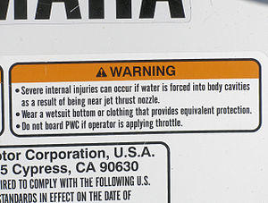 - ^ 2001 Joint USCG/Industry Label Project, Injury Control and Safety Promotion, 2001, Vol. 8, No. 2, pp71-81; Labeling for Personal Watercraft.