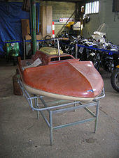 Water scooters—as they were originally termed—were first developed in the United Kingdom and Europe in the mid-1950s, with models such as the British 200cc propellor-driven Vincent Amanda, and the German Wave Roller.[3][4] Two thousand Vincent Amandas were exported to Australia, Asia, Europe and the United States.[5] In the 1960s, the idea was developed further by Clayton Jacobson II of Lake Havasu City, Arizona, USA. Originally a motocross enthusiast,[6][7][8] Jacobson's idea was designed in the mid-1960s, powered by an internal pump-jet rather than an outboard motor,[8] made of all aluminum, and had a fixed, upright handle. Jacobson eventually quit his job in banking to devote himself to developing the idea, and had a working prototype by 1965. It differed slightly from modern personal watercraft but had definite similarities. He completed a second prototype a year later made of fiberglass.[9] The first Clayton-type PWC to reach the market was designed by Bombardier in the late 1960s.[10] Bombardier's original designs were not very popular and Bombardier left the business before 1970.