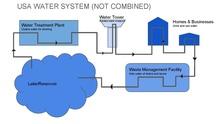 - Connections to the sewers (underground pipes, or aboveground ditches in some developing countries) are generally found downstream of the water consumers, but the sewer system is considered to be a separate system, rather than part of the water supply system.