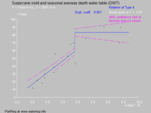 In agricultural land drainage, the purpose of water table control is to establish a depth of the water table (Figure 1) that does no longer interfere negatively with the necessary farm operations and crop yields (Figure 2, made with the SegReg model, see the page: segmented regression).