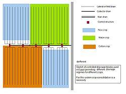 Most crops need a watertable at a minimum depth because at shallower depths the crop suffers a yield decline.[10] For some important food and fiber crops a classification was made:[11]