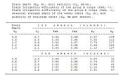 Figure 4 shows an example of the effect of drain depth on soil salinity and various irrigation/drainage parameters as simulated by the SaltMod program.[4]