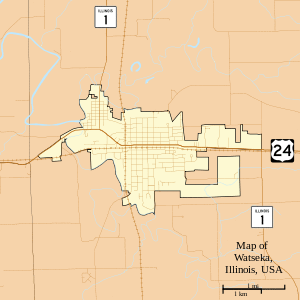 Watseka is a city in and the county seat of Iroquois County, Illinois, United States.[3] It is located approximately 15 miles (24 km) west of the Illinois-Indiana state line on U.S. Route 24.