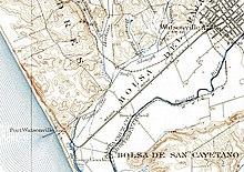 Watsonville was served by the Southern Pacific railroad, but local businessmen felt they could secure more favorable rates if they had a seaport. A 6-mile (9.7 km) electric railway line was built from Main Street in Watsonville along Wall Street to a wharf constructed from the shore of Monterey Bay at Port Rogers. A power station, car barn, and freight warehouse were built on Beach Road where the electric line crossed the similarly narrow gauge Pajaro Valley Consolidated Railroad; but there was little cause to interchange cars because the steam railroad served its own wharf at Moss Landing. The electric railroad had two street cars serving the dual purpose of carrying passengers and pulling some of the railroad's two boxcars and four flatcars.[2]