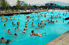 A wave pool is a swimming pool in which there are artificially generated, reasonably large waves, similar to those of the ocean. Wave pools are often a major feature of water parks, both indoors and outdoors, as well as some leisure centres.