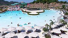 The world's largest wave pool by area is 13,600 square metres (146,000 sq ft) and located in Bangkok's Siam Park City.[12]