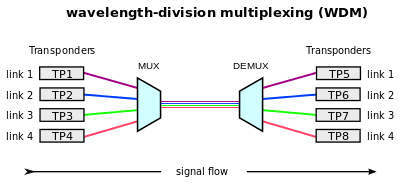 In fiber-optic communications, wavelength-division multiplexing (WDM) is a technology which multiplexes a number of optical carrier signals onto a single optical fiber by using different wavelengths (i.e., colors) of laser light.[1] This technique enables bidirectional communications over one strand of fiber, as well as multiplication of capacity.[1]