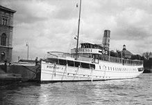 The origins of the company lie in the Djurgårdens Ångbåts-Aktie-Bolag, which was established in 1849. The company operated a steamboat service to the Stockholm archipelago, using the paddle steamers Ran and Aegir on routes from Stockholm to Vaxholm and Dalarö. The new steamboats answered a demand for travel to and from the archipelago, both from affluent Stockholmer’s building summer villas on outlying islands, but also from archipelago residents who travelled into the city to sell fish and vegetables at the market.[1][2]