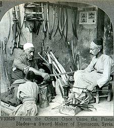 One of these bladesmiths was William F. Moran, who forged his knives using a coal forge in the manner of a blacksmith using a hammer and anvil to shape the steel. Moran began trying to revive the ancient process of forging Damascus steel in the late 1960s. However, no living bladesmith knew the exact techniques and without a recipe for the process, it was in danger of being lost; through trial and error he taught himself pattern welding and referred to his end product as "Damascus steel".[22]