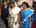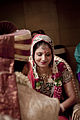 Bride at a Nikah ceremony wearing typical South Asian red head covering and jewellery