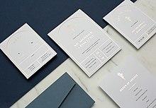 Following the invention of Lithography by Alois Senefelder in 1798, it became possible to produce very sharp and distinctive inking without the need for engraving.[2] This paved the way for the emergence of a genuine mass-market in wedding invitations.
