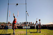 The weight over the bar, or weight throw for height, is contested at highland games in Scotland and elsewhere, and at track and field events in Ireland.