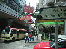 Wellington Street (Chinese: 威靈頓街) is a one-way street located in Central and Sheung Wan, Hong Kong. Named after Arthur Wellesley, 1st Duke of Wellington, it stretches from Wyndham Street to Queen's Road Central. The two sides of street is a mosaic of old and new buildings. Varieties of trades can be found on the street level. Street markets can be found in the adjacent lanes.