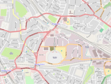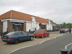The frontage of the station building is an Italianate design from the early 20th century. However, because of the extensive use of the station the layout has been altered many times since. Behind the frontage are passages above track level with staircases leading down to the platforms, constructed in the 1940s in the red-brick modernist style of the period. Parts of the platforms were rebuilt in the 1940s and then the 2000s, which also added the current entrance to the west of the station towards the stadium.