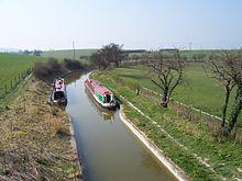 When James Barnes was planning the route for the Grand Junction Canal, he was faced with the problem of crossing the Chiltern Hills. Since ancient times, roads had passed through the Tring Gap, a low saddle in the hills near Tring, and Barnes opted for this route.[1] The main line of the canal was authorised by an Act of Parliament obtained in 1793. A second Act was obtained on 28 March 1794, which authorised the construction of branches to Buckingham, Aylesbury, and Wendover.[2] On its journey through the Chilterns, the main line reaches a height of 390 feet (120 m) at Tring summit.[3] From the south, it ascends through a series of locks which follow the valleys of the rivers Gade and Bulbourne[4] to reach Cowroast Lock. After a relatively short 3-mile (4.8 km) summit,[1] the canal starts its descent at Bulbourne, picking up the valley of the River Ouzel.[5]