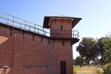 By the 1860s the lockup was enlarged to three rooms but it was apparent that a new gaol was needed. Some necessary improvements to prisoner accommodation were effected during 1877 after which the Gaol was reported to house three separated and nine associated prisoners.[5] In late 1875 the gaol could not shelter all 12 prisoners, and 3 were chained outside. Passionate pleas to the Colonial Secretary described the overcrowded conditions in the gaol as a "disgrace", "shameful", and as the 'Wentworth Black Hole".[6] There are reports of some improvements to prisoner accommodation during 1877 after which the Gaol was reported to house three separated and nine associated prisoners.[2][7]
