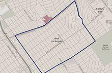 The West Los Angeles Community Plan area recognized by the city of Los Angeles is generally bounded by Centinela Avenue on the west; Wilshire Boulevard and Santa Monica Boulevard on the north; National Boulevard, Pico Boulevard, and Exposition Boulevard on the south; and Durango Avenue, Robertson Boulevard, and Canfield Avenue on the east. Among the neighborhoods included within it are Sawtelle, Rancho Park, Beverlywood, Cheviot Hills, Castle Heights, and Century City.[1][2] The Community Plan area itself is part of the larger West Los Angeles Area Plan Commission area (i.e., the Westside region).[3]