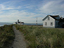 West Point is the westernmost point in Seattle, Washington, United States, jutting into Puget Sound from the Magnolia neighborhood. It also marks the northern extent of Elliott Bay; a line drawn southeastward to Alki Point marks the western extent of the bay. At the point itself is the 1881 West Point Lighthouse, the first manned light station on Puget Sound. Just to the east is King County's sewage treatment plant, and beyond that, Discovery Park, formerly the U.S. Army's Fort Lawton.