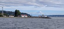 The West Point Light, also known as the Discovery Park Lighthouse, is an active aid to navigation on Seattle, Washington's West Point, which juts into Puget Sound and marks the northern extent of Elliott Bay.[4] The lighthouse is similar in design to the Point No Point Light and was added to the National Register of Historic Places in 1977.[5] It is a main feature of Seattle's Discovery Park.
