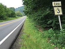 Route 3 crosses a particularly large part of the state's landscape. It goes through many counties including Monroe, Greenbrier, Summers, Raleigh, Boone, and Lincoln. At least two state parks are along the route. Moncove Lake State Park, in the southeastern part of the state, is just a few miles off the main road near Gap Mills. Little Beaver State Park is in Beaver, near the major city of Beckley.[2]