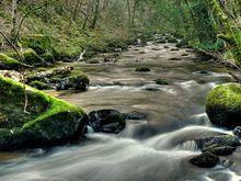 The West Webburn is a stream on Dartmoor in Devon in south-west England. It rises on the eastern side of the moors flowing off the east side of Hameldown Ridge. Its source is extremely close to the Grimspound Bronze Age settlement, and it was probably the main source of water for the settlement. It flows south, going past Widecombe-in-the-Moor, and joins the East Webburn River at Lizwell Meet in Oakmoor Wood. These combined streams then join the River Dart at Buckland Bridge in Holne Chase.[1]