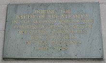 After the fall of France in June 1940, the main North Atlantic convoy routes were diverted around the north of Ireland through the north-western approaches.[2] By late 1940, the location of the Combined Operations headquarters at Plymouth was increasingly awkward and the decision was taken to move the Combined Operations headquarters to Liverpool.[2] On 7 February 1941, the headquarters was established at Derby House, Liverpool,[2] with a secondary control bunker built in Magee College, Derry.[3] Derby House was designated HMS Eaglet; it was customary to treat naval shore establishments as ships so that its occupants abide by naval rules. The headquarters of No. 15 Group RAF (part of Coastal Command) moved to Liverpool at the same time.[4] On 17 February 1941 Admiral Sir Percy Noble was appointed as the new Commander-in-Chief, Western Approaches Command.[2] The Western Approaches Tactical Unit (WATU) was formed in January 1942 to develop and disseminate new tactics to counter German submarine attacks on trans-Atlantic shipping convoys. WATU took up residency on the top floor of Derby House.[5]