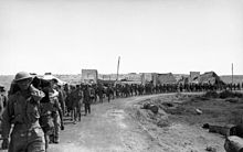 Gott, now a Lieutenant-General and commander of XIII Corps, appointed Major-General Hendrik Klopper to the command of the 2nd South African Division, to defend Tobruk. Along with two South African brigades, were the 201st Guards (Motorised) Brigade, 11th Indian Infantry Brigade, 32nd Army Tank Brigade and the 4th Anti-Aircraft Brigade.[73] Tobruk had been besieged for nine months in 1941 but this time the Royal Navy could not guarantee the supply of the garrison and Auchinleck viewed Tobruk as expendable but expected that it could hold out for two months.[74][75] On 21 June, 35,000 Eighth Army troops surrendered to Lieutenant-General Enea Navarini, the commander of XXI Corps.[76] Auchinleck relieved Ritchie, took over the Eighth Army and stopped the Axis advance at El Alamein, 70 mi (110 km) from Alexandria; after the First Battle of El Alamein Auchinleck was also sacked.[77]