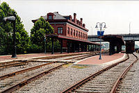Passenger service on the WM began in 1859. The WM's original Hillen Street Station in downtown Baltimore (pictured) was demolished in 1954. A smaller replacement Baltimore station was briefly used between 1954-1957.[8] Revenue passenger-miles declined from 26 million in 1925 to 2 million in 1956, and passenger service ended in 1959.[1]:Chp.V In 1964, the C&O and the B&O jointly filed for permission to acquire control of the Western Maryland Railway with the Interstate Commerce Commission (ICC). The ICC approved the acquisition in 1968.[9]:364 In 1973, as part of the Chessie System, Western Maryland ownership went to C&O and it was operated by the B&O. The B&O itself merged with the C&O in 1987, which itself became part of CSX Transportation.