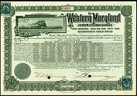 The original main line began with the chartering of the Baltimore, Carroll and Frederick Railroad in 1852, with the intent of building a rail line from Baltimore west to Washington County, Maryland. The Maryland General Assembly changed the name of the company to the Western Maryland Rail Road Company in 1853, and construction began from Owings Mills in 1857.[1] An existing Northern Central Railway branch line terminating at Owings Mills was used to connect into Baltimore. The railroad was completed to Westminster in 1861 and Union Bridge in 1862. Further expansion was delayed because of the Civil War. Westward construction resumed in 1868 under Chief Engineer Joseph S. Gitt, and the line was completed to Hagerstown in 1872. This section became the East Subdivision. The company's first major car shops were established at Union Bridge.[3]