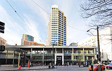 Westlake Center is a four-story shopping center and 25-story office tower in downtown Seattle, Washington, United States. The southern terminus of the Seattle Center Monorail, it is located across Pine Street from Westlake Park, between 4th and 5th Avenues. It is named for Westlake Avenue, which now terminates north of the mall but once ran two blocks farther south to Pike Street. Westlake Park is considered Seattle's "town square"[3] and celebrities and political figures often make appearances or give speeches from the building's balcony.[4][5]