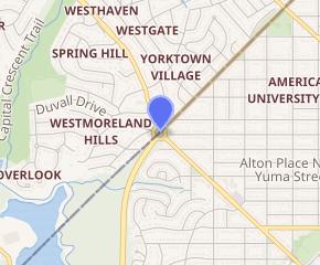 Westmoreland Circle is a traffic circle straddling the border between the U.S. state of Maryland and the District of Columbia. The circle lies at the intersection of Western Avenue, Butterworth Place, Massachusetts Avenue, Dalecarlia Parkway, Wetherill Road, and Dalecarlia Drive. The grass area and trees within the interior of the circle are maintained by and under the jurisdiction of the National Park Service.