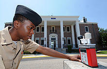 In hot areas, some[3] US military installations display a flag to indicate the heat category based on the WBGT. The military publishes guidelines for water intake and physical activity level for acclimated and unacclimated individuals in different uniforms based on the heat category. The University of Georgia adapted these categories for use in college sports as a guideline for how strenuous practices can be.[4]