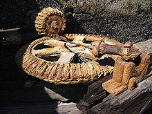 Attempts were made in the mid-1880s, again from 1898 to 1901, and then from 1913 to 1914, to mine sulphur from Whakaari / White Island, with the island at first being owned by John Wilson.[40] Mining came to a halt in September 1914, when part of the western crater rim collapsed, creating a lahar that killed all 10 workers,[41] who disappeared without trace. Only a camp cat survived, found some days afterwards by the resupply ship and dubbed "Peter the Great".[42][43]