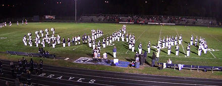 The stylings of the Whetstone High School Marching Band can be traced back to The Ohio State University Marching Band through uniform and showmanship. The WHSMB uniform is based on the OSUMB's uniform, which is heavily influenced by the 1920s U.S Army ROTC uniform.[5] Whetstone's ramp entrance is based on the OSUMB's traditional entrance into Ohio Stadium. The WHSMB drum major also styles themselves off of the drum majors of OSU with the signature, "Back Bend" and jabs down the field. At each homecoming game, the WHSMB performs its signature "Script WHS", which is derived from "Script Ohio" and is performed to the final section of Edwin Eugene Bagley's National Emblem march.[6]