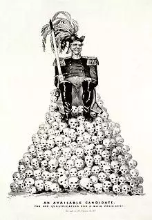Though Fillmore's enforcement of the Fugitive Slave Act made him unpopular among many in the North, he retained considerable support in the South. Meanwhile, Secretary Webster had long coveted the presidency and, though in poor health, planned a final attempt to gain the White House.[107] A third candidate emerged in the form of General Winfield Scott, who won the backing of many Northerners but whose association with Senator William Seward made him unacceptable to Southern Whigs.[107] On the first presidential ballot of the 1852 Whig National Convention, Fillmore received 133 of the necessary 147 votes, while Scott won 131 and Webster won 29. Fillmore and Webster's supporters were unable to broker a deal to unite behind either candidate, and Scott won the nomination on the 53rd ballot.[108] The 1852 Democratic National Convention nominated a dark horse candidate in the form of former New Hampshire senator Franklin Pierce, a Northerner sympathetic to the Southern view on slavery.[109] As the Whig and Democratic national conventions had approved similar platforms, the 1852 election focused largely on the personalities of Scott and Pierce.[110] The 1852 elections proved to be disastrous for the Whig Party, as Scott was defeated by a wide margin and the Whigs lost several congressional and state elections.[111] Scott amassed more votes than Taylor had in most Northern states, but Democrats benefited from a surge of new voters in the North and the collapse of Whig strength in much of the South.[112]