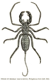 14. ^ "Giant whip scorpion Mastigoproctus giganteus giganteus (Lucas, 1835)". Featured Creatures. Institute of Food and Agricultural Sciences, University of Florida. Retrieved 2016-08-01.