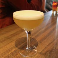 The whiskey sour is a mixed drink containing whiskey (often bourbon), lemon juice, sugar, and optionally, a dash of egg white or cocktails foamer. With the egg white, it is sometimes called a Boston Sour. With a few bar spoons of full-bodied red wine floated on top, it is often referred to as a New York Sour. It is shaken and served either straight up or over ice.