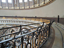 A whispering gallery is most simply constructed in the form of a circular wall, and allows whispered communication from any part of the internal side of the circumference to any other part. The sound is carried by waves, known as whispering-gallery waves, that travel around the circumference clinging to the walls, an effect that was discovered in the whispering gallery of St Paul's Cathedral in London.[1] The extent to which the sound travels at St Paul's can also be judged by clapping in the gallery, which produces four echoes.[2] Other historical examples[3][4][5] are the Gol Gumbaz mausoleum in Bijapur and the Echo Wall of the Temple of Heaven in Beijing. A hemispherical enclosure will also guide whispering gallery waves. The waves carry the words so that others will be able to hear them from the opposite side of the gallery.