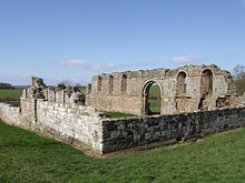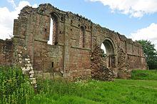 The origins and exact date of foundation of the priory are not known: the latter part of the 12th century is generally accepted as the period of establishment.[2] The surviving ruins show work typical of the late 12th century, and the first documentary evidence dates from 1186 or earlier. In it, Emma, daughter of Reynold of Pulverbatch, in the process of giving land to Haughmond Abbey mentions that she has already granted a virgate of land in Beobridge to the white nuns of Brewood.[3] The publication of this information by the important Shropshire historian Robert William Eyton in 1856 directly contradicted his own conviction, published only a year earlier, of a date in the reigns of Richard I of England or John,[4] as well as casting into doubt older traditions linking the priory with Archbishop Hubert Walter.[5] Eyton thought the priory a Cistercian house, which is now known to be incorrect, but his documentary research still gives the earliest known date by which it must have been founded.