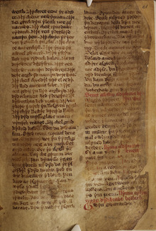 The White Book was copied in the mid 14th century, most probably for Rhydderch ab Ieuan Llwyd (c. 1325–1400) from Parcrhydderch in the parish of Llangeitho in Ceredigion. Rhydderch, who came from a family with a long tradition of literary patronage, held posts under the English Crown but was also an authority on native Welsh law. The hands of five scribes have been identified in the manuscripts, very likely working in Strata Florida Abbey, not far from Rhydderch's home, and certainly in South Wales based on the dialect used by the scribes.[1] The remainder of the name refers to the book being bound in white.