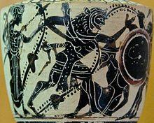 Achilles and Ajax playing a board game (Attic lekythos by the workshop of the Diosphos Painter, ca. 500 BC)