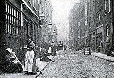 All the identified victims of the Whitechapel murders lived within the heart of the rookery in Spitalfields, including three in George Street (later named Lolesworth Street), two in Dorset Street, two in Flower and Dean Street and one in Thrawl Street.[8]
